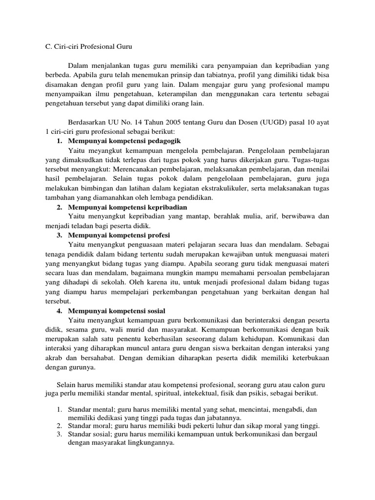 Ciri Ciri Guru Yang Profesional from imgv2-2-f.scribdassets.com Om.makplus at 6/19/2015 02:22:00 am. Kapanpun seorang siswa membutuhkan bimbingan. Hal ini bermakna bahwa seorang guru selalu memiliki waktu untuk mendidik siswanya menjadi lebih baik. Selalu punya energi untuk siswanya seorang guru yang baik me. Faktor terpenting yang menentukan keberhasilan sebuah lembaga pendidikan adalah faktor sumber daya manusianya, dalam hal ini yaitu guru sebagai pendidik. Pd dalam dunia pendidikan, keberadaan peran dan fungsi guru merupakan salah satu faktor yang yang sang sangat at signi signifi fika kan. Punya tujuan jelas untuk pelajaran. Yang memiliki akhlak yang mulia, serta berbudi pekerti luhur.